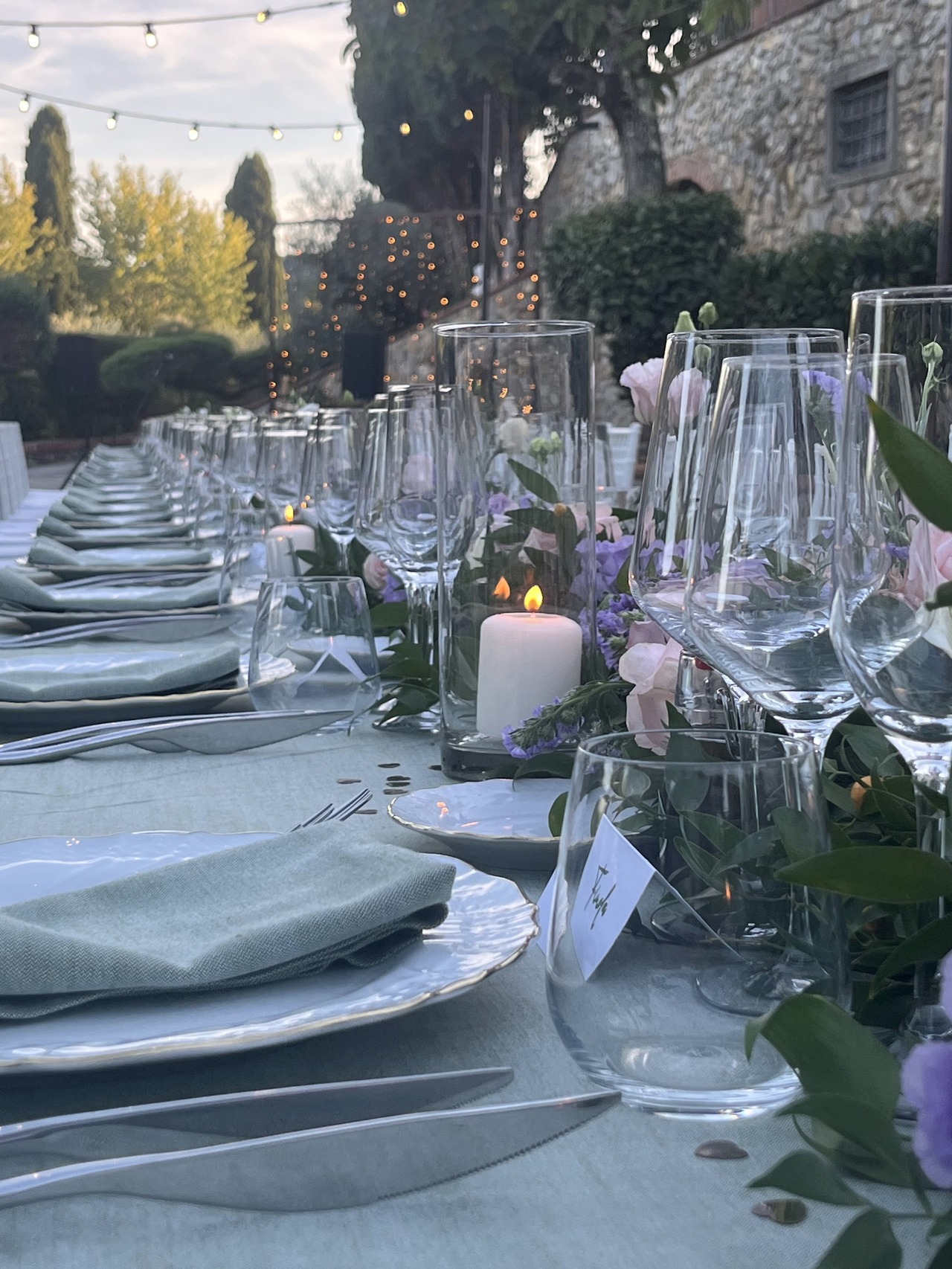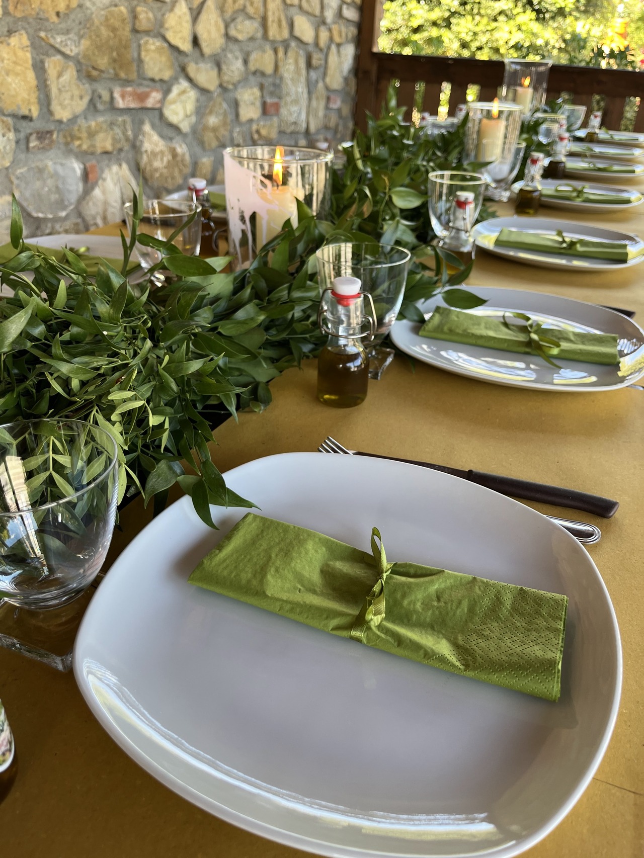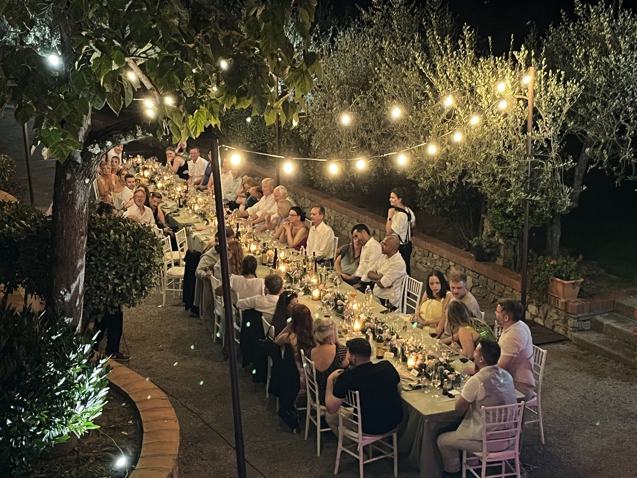 - Cena Sotto le Stelle: Scegliete l'ambientazione perfetta per il banchetto, una cena elegante nel giardino, l'atmosfera suggestiva della nostra vigna o il fascino senza tempo dell'uliveta.